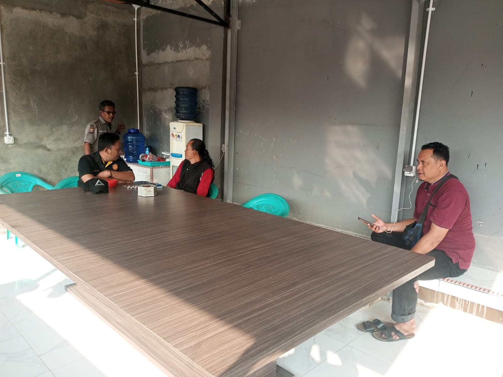 Personil sat intelkam melakukan koordinasi dengan tokoh masyarakat kec. Ciwandan kota cilegon.