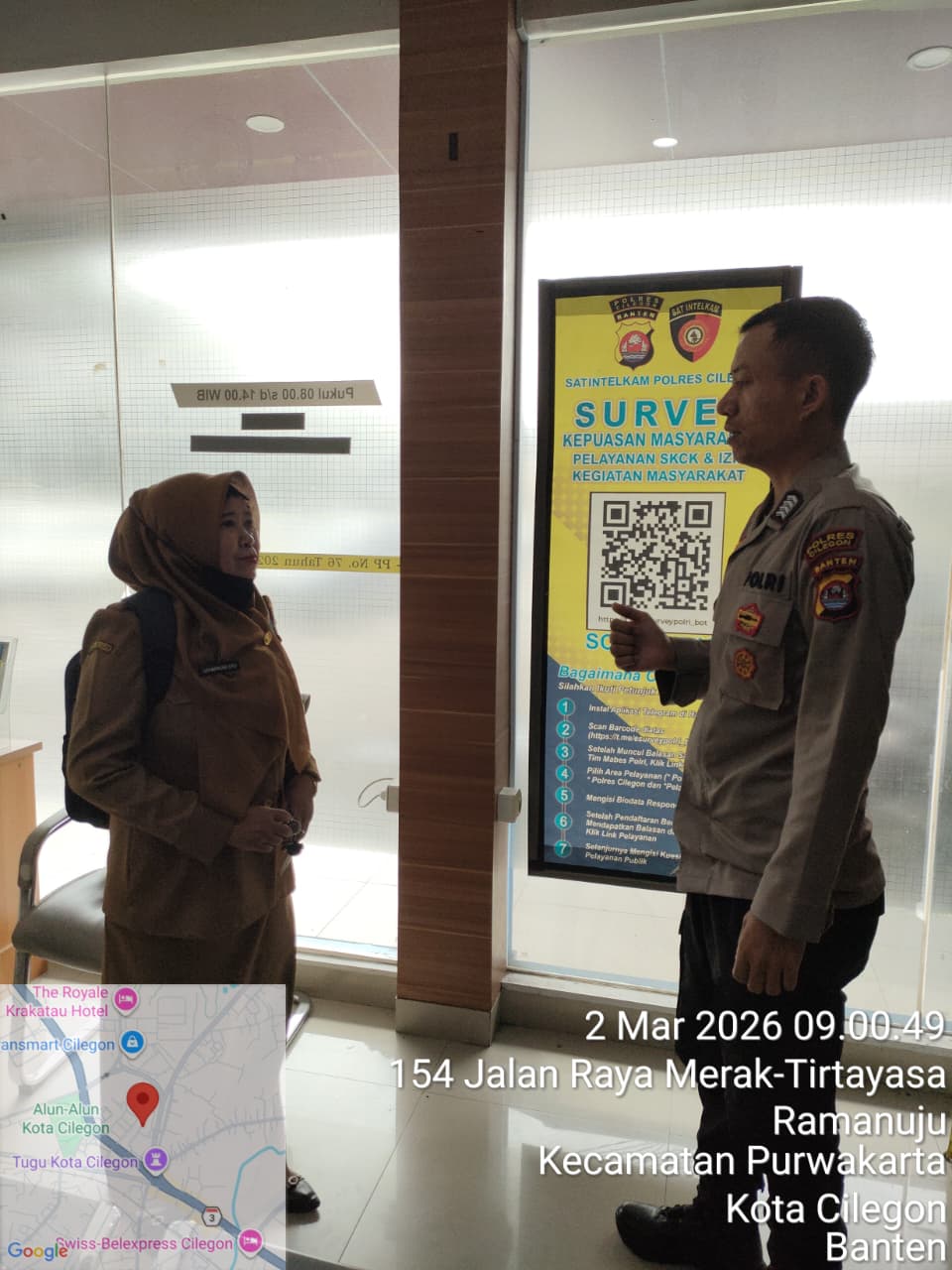 -POLRES CILEGON- Polda Banten. Personil Polsek Kskp Banten Polres Cilegon Polda Banten Laksanakan Silaturahmi Polri serta Patroli Dialogis Pembinaan Satpam/Security dan Guna Memelihara Harkamtibmas, Sebagai Petugas satuan pengamanan atau security merupakan bagian dari mitra dan kepanjang tanganan tugas Polri yang membantu melaksanakan pengamanan di daerah binaannya, Senin (02/03). Kapolres Cilegon Polda Banten AKBP Martua Raja...