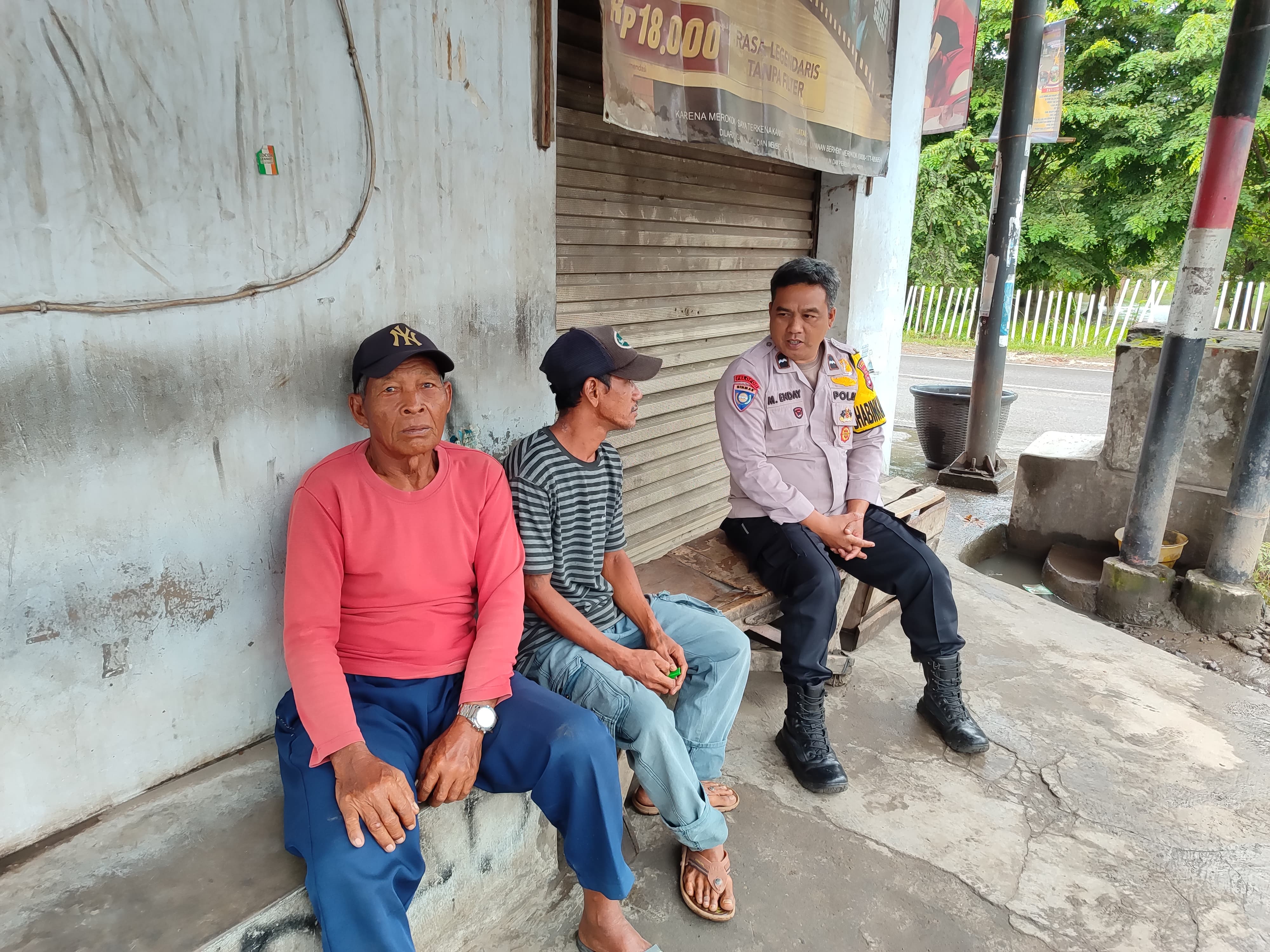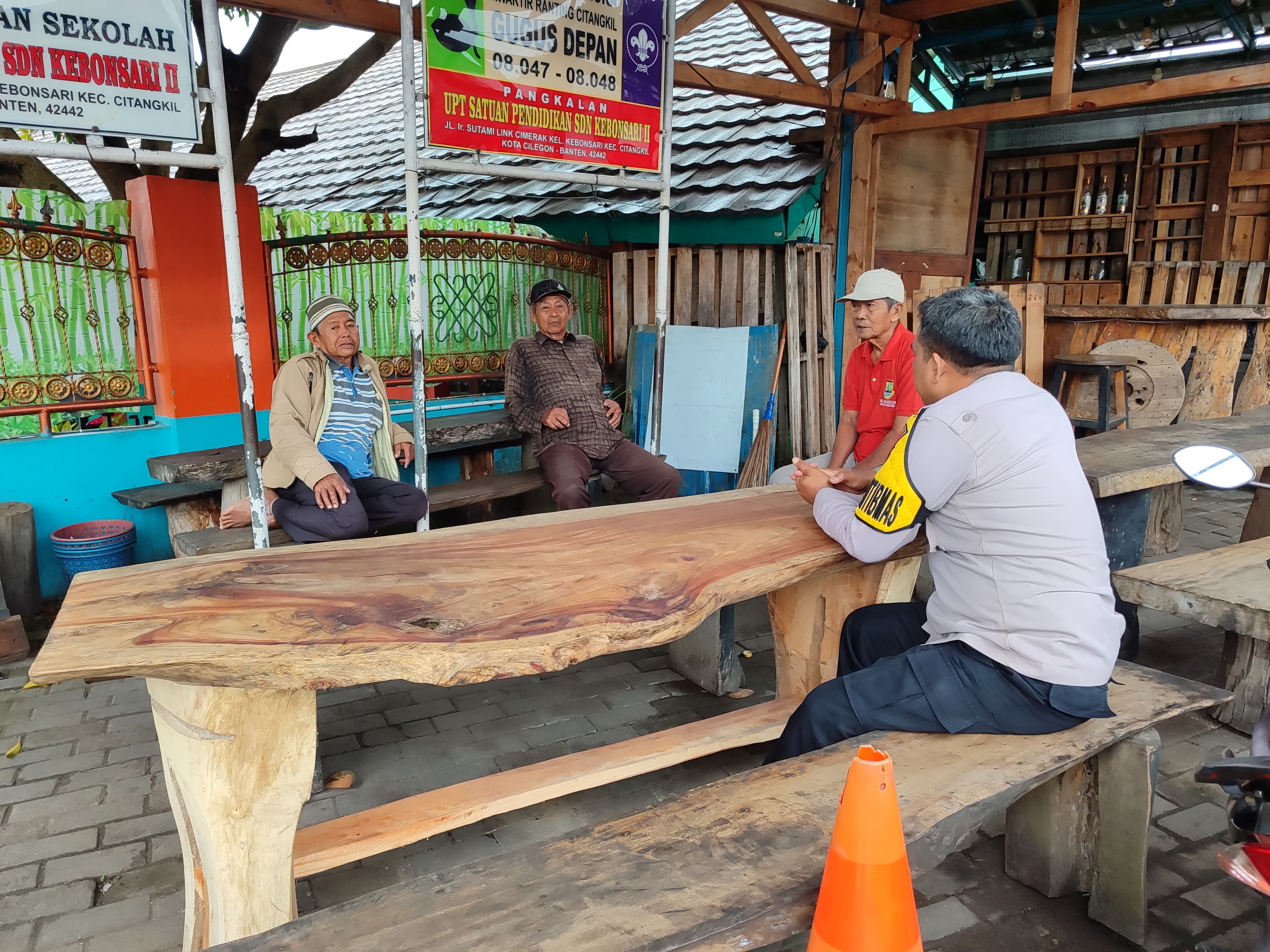 Bhabinkamtibmas Polsek Mancak Polres Cilegon Jalin Komunikasi Sosial Sambil Ngopi.
