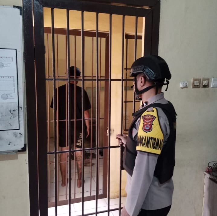 Personil Piket jaga Cek dan kontrol ruang tahanan Polsek Purwakarta Polres Cilegon Pastikan Tahanan di dalam Sehat dan dan kebersihan dalam Ruang Tahanan