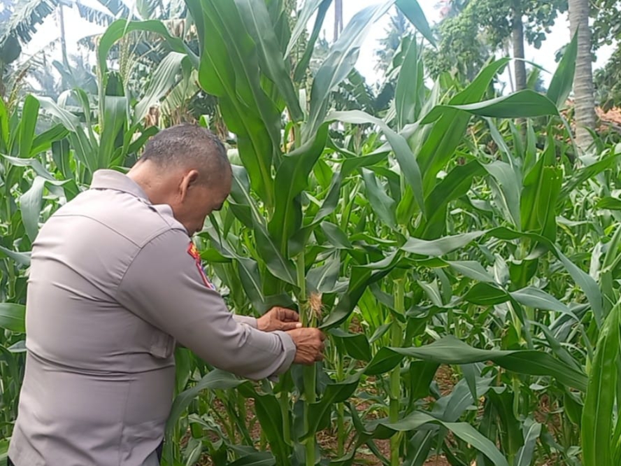 Kanit Binmas Polsek Pulomerak bersama Poktan Lebakgede cek tanaman jagung