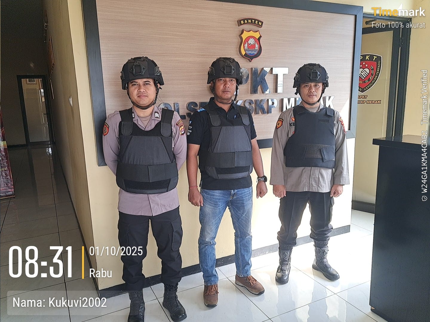 Cilegon - Personel piket jaga Polsek Kskp Merak Polres Cilgon Polda Banten melaksanakan siaga 1 Polsek pelaksanaan Sispam Mako oleh piket siaga dipimpin oleh Kspk Polsek Kskp Merak Polres Cilegon Polda Banten, Rabu (01/10/2025).