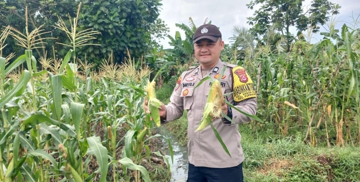 -POLRES CILEGON- Polda Banten. Personil Bhabinkamtibmas Aiptu Daryo.E bersama bersama Kelompok Tani warga binaanya Melaksanakan Panen Jagung Dalam Rangka Mendukung Program Ketahanan Pangan Pemerintah dengan Cek Tanaman jagung di Bebulak Timur Kelurahan Kebondalem Kecamatan Purwakarta Kota Cilegon.Kamis.(02-10-2025)