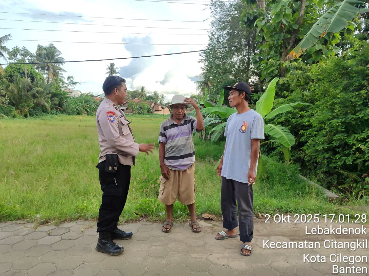 Cilegon -  Bhabinkamtibmas Polsek Ciwandan Polres Cilegon Polda Banten Menyapa warga serta Ajak warga Binaannya untuk berperan aktif jaga keamanan lingkungan serta jalin komunikasi agar tercipta situasi aman di daerah hukum Polsek Ciwandan Polres Cilegon Polda Banten,Kamis (02/10/2025).