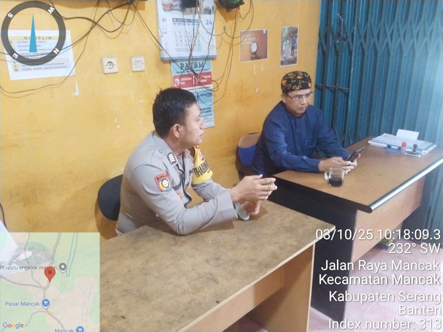 Mancak - Sebagai Pengemban Fungsi Harkamtibmas, Bhabinkamtibmas Polsek Mancak Kegiatan Commander Wish Kapolres Cilegon "TRENDING" dengan cara  giat Sambang/DDS dan monitoring antisipasi Gangguan Kamtibmas di wilayah Desa.Mancak Kec. Mancak Kab. Serang. Jumat (03/10/2025).
