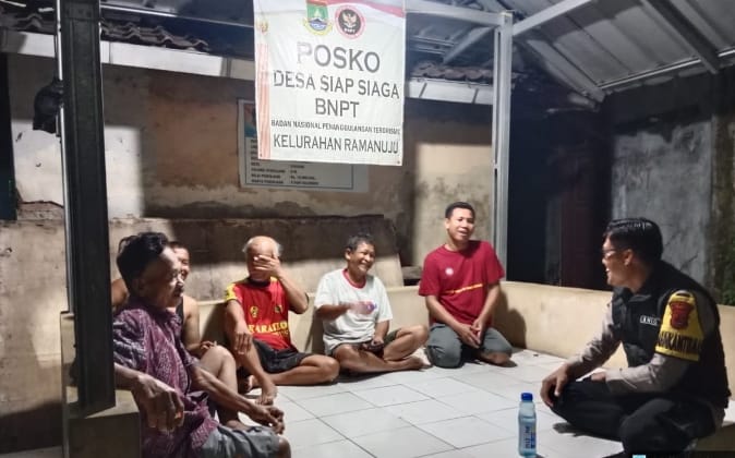-POLRES CILEGON-Polda Banten. Dalam rangka Menjamin situasi kamtibmas di wilayah Bhabinkamtibmas Anto Maulana Blusukan mendatangi Pos Ronda Warga pastikan Situasi Kamtibmas Wilayah tetap Kondusif dan aman dan memberikan Rasa Nyaman dengan Mendatangi Pos Ronda Warga serta Bripka Anto Maulana memberikan pesan-pesan Kamtibmas secara humanis kepada masyarakat yang berada di sedang melaksanakan Jaga Pos Ronda/Siskamling di Pos Jaga Kelurahan Ramanuju Kecamatan Purwakarta Kota Cilegon.Jumat.(03-10-2025).