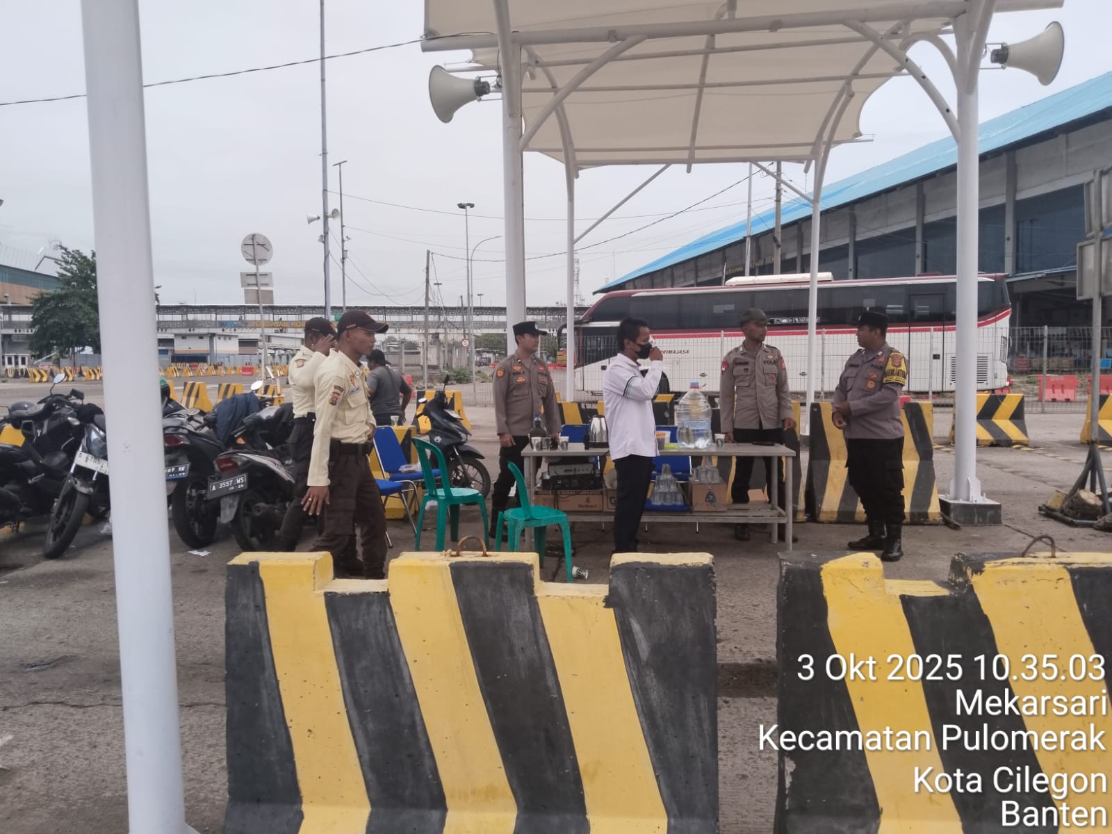 Cilegon - Personel Polsek Kskp Merak Polres Cilegon Polda Banten melaksanakan sambang dan patroli kawasan pelabuhan merak dalam rangka menjaga Harkamtibmas di Kawasan Pelabuhan Merak, Jumat (03/10/2025).