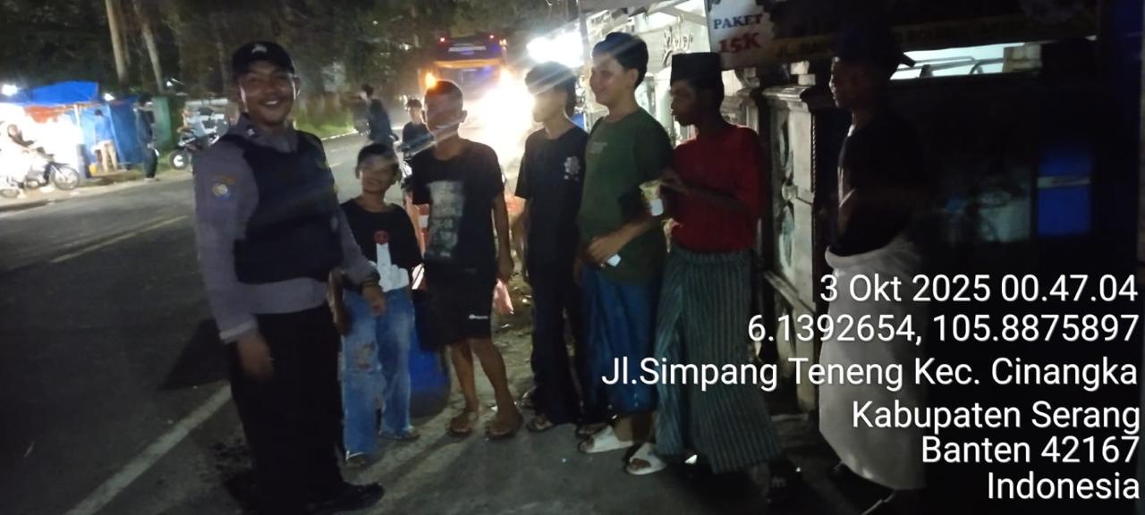 -*POLRES CILEGON*-Polda Banten. Dalam rangka Menjaga situasi kamtibmas kondusif mencegah terjadinya gangguan Kamtibmas Premanisme, Kriminalitas di wilayah Personil Piket Polsek Cinangka mencegah dan Menekan Para Pelaku kejahatan dengan Patroli Blue Light yang di Lakukan Polsek Cinangka gencar Patroli Blue Light dini hari di Wilkum Cinangka Kab Serang . Jumat (03/10/2025)