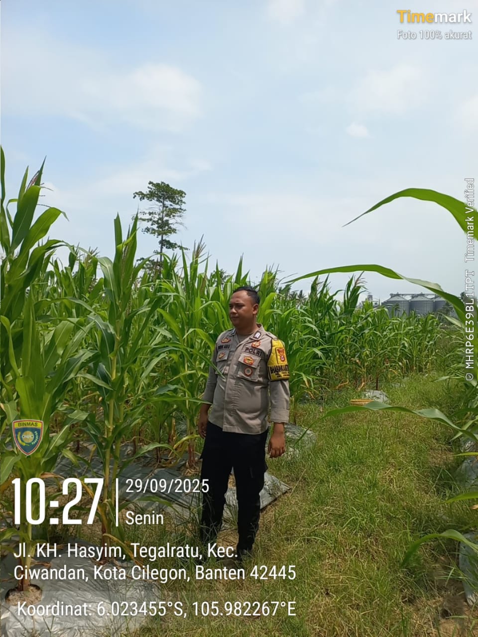 Cilegon - Dalam rangka memberikan dukungan kepada Pemerintah terkait Ketahanan pangan, Bhabinkamtibmas Ciwandan Polres Cilegon Polda Banten melaksanakan Implementasikan Program Asta Cita Presiden dengan fokus pada sektor Pertanian tanaman Jagung dilingkungan Binaan,Jum’at (03/10/2025)