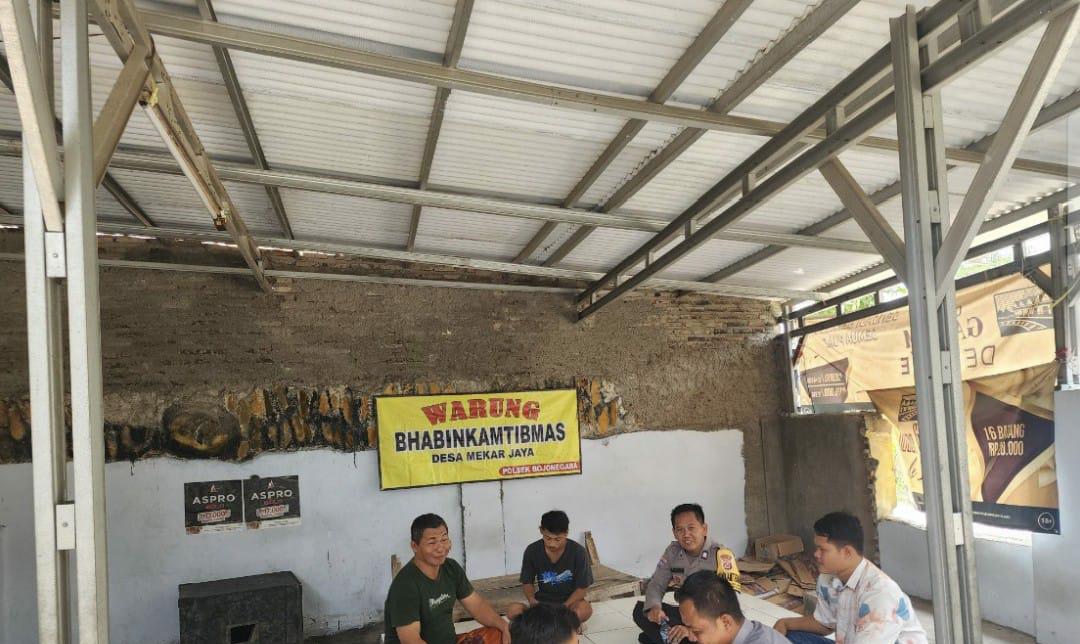 Ngopi Kamtibmas Bersama Warga di Warung Bhabin, Bripka Tri Handoko dan Brigadir Chaeruman Polsek Bojonegara Ajak Jaga Keamanan Lingkungan Siang Hari
