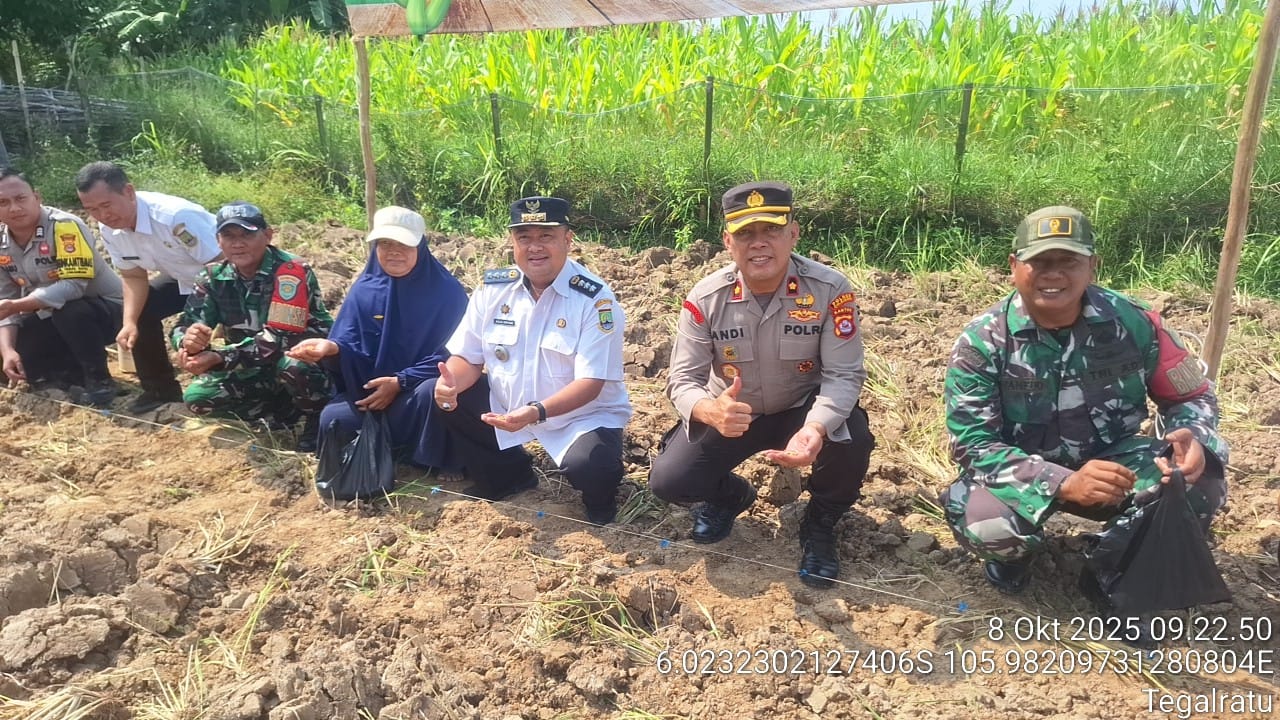Cilegon - Dalam Rangka Mendukung Asta Cita Presiden Republik Indonesia Tentang Ketahanan Pangan,secara Serentak Penanaman Jagung Kapolsek Ciwandan KOMPOL Andi Suherman Dan Forkopimcam Kecamatan Ciwandan Turun Langsung ke lahan Penanaman jagung secara Serentak Bersama Personil Dan masyarakat, Rabu (08/10/2025).