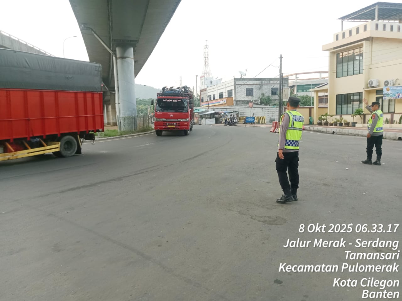 Personil KSKP Merak Laksanakan Pengaturan Antrian Kendaraan di Pelabuhan Merak
