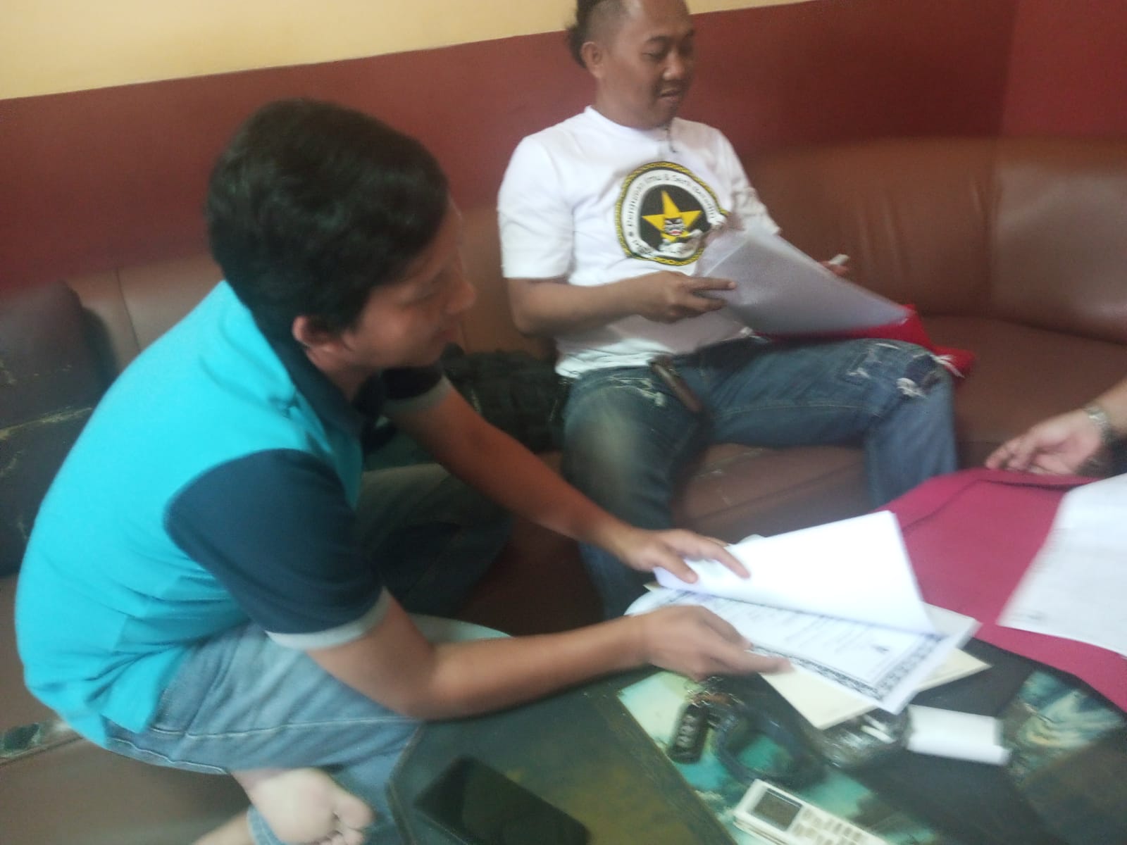 Personil sat intelkam melakukan koordinasi dengan tokoh pemuda kec. Puloampel kabupaten serang.
