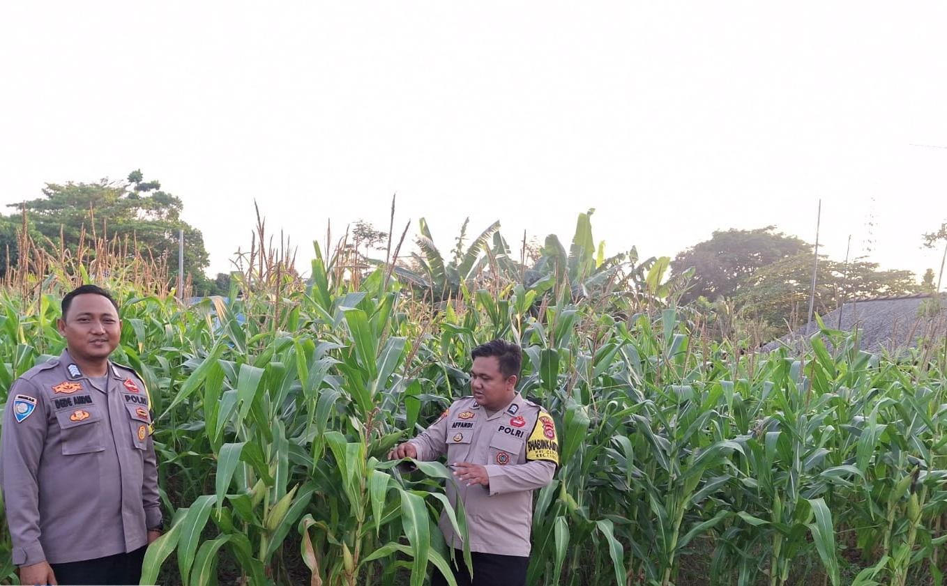 Pada kesempatan tersebut personil bhabinkamtibmas polsek Cibeber Polres Cilegon Polda Banten meninjau langsung lahan pertanian Jagung milik warga Binaan Lingkungan kelurahan Karang Asem Kec. Cibeber.