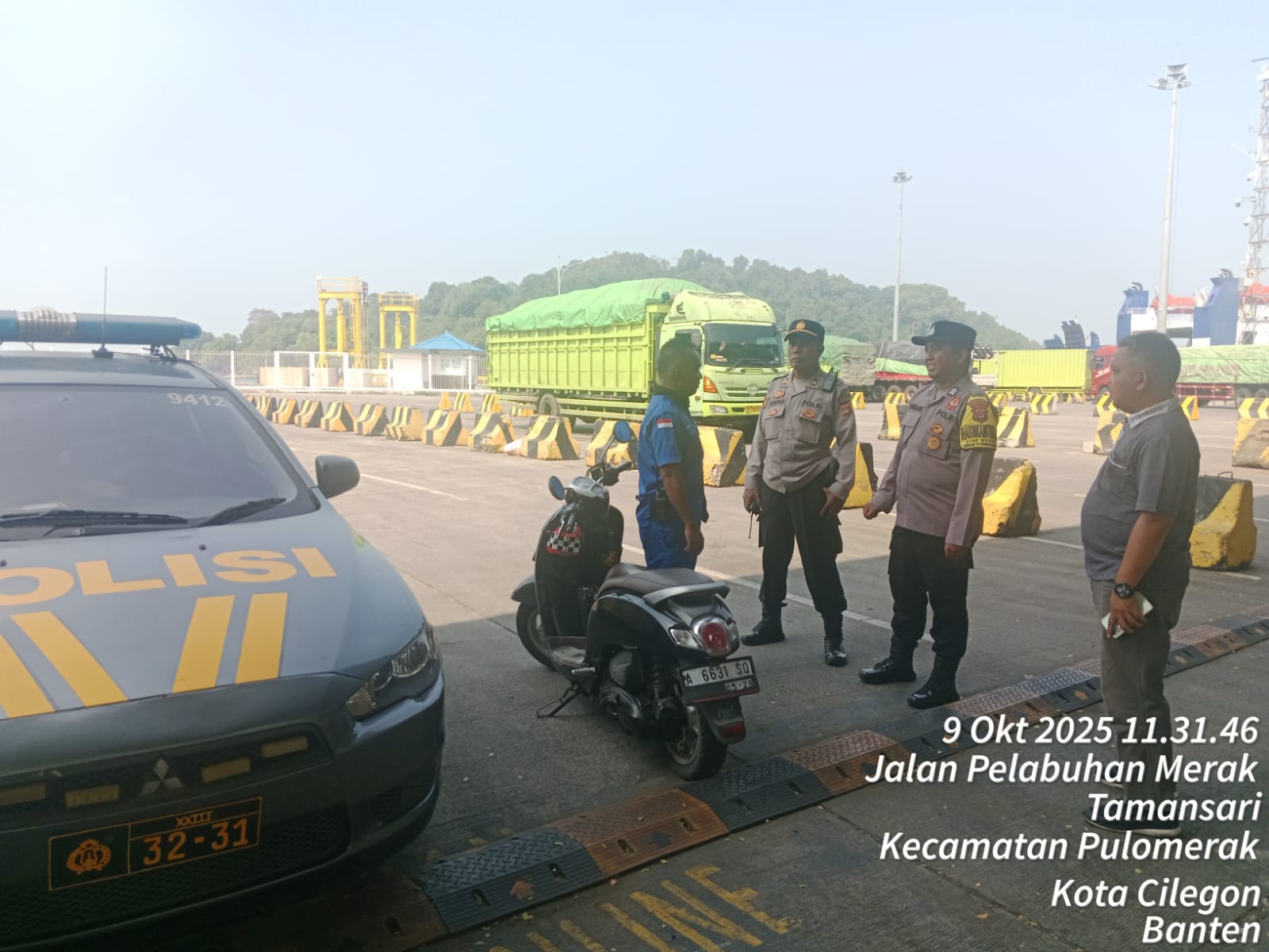 Cilegon - Personel Polsek Kskp Merak Polres Cilegon Polda Banten melaksanakan sambang dan patroli kawasan pelabuhan merak dalam rangka menjaga Harkamtibmas di Kawasan Pelabuhan Merak, Kamis (09/10/2025).