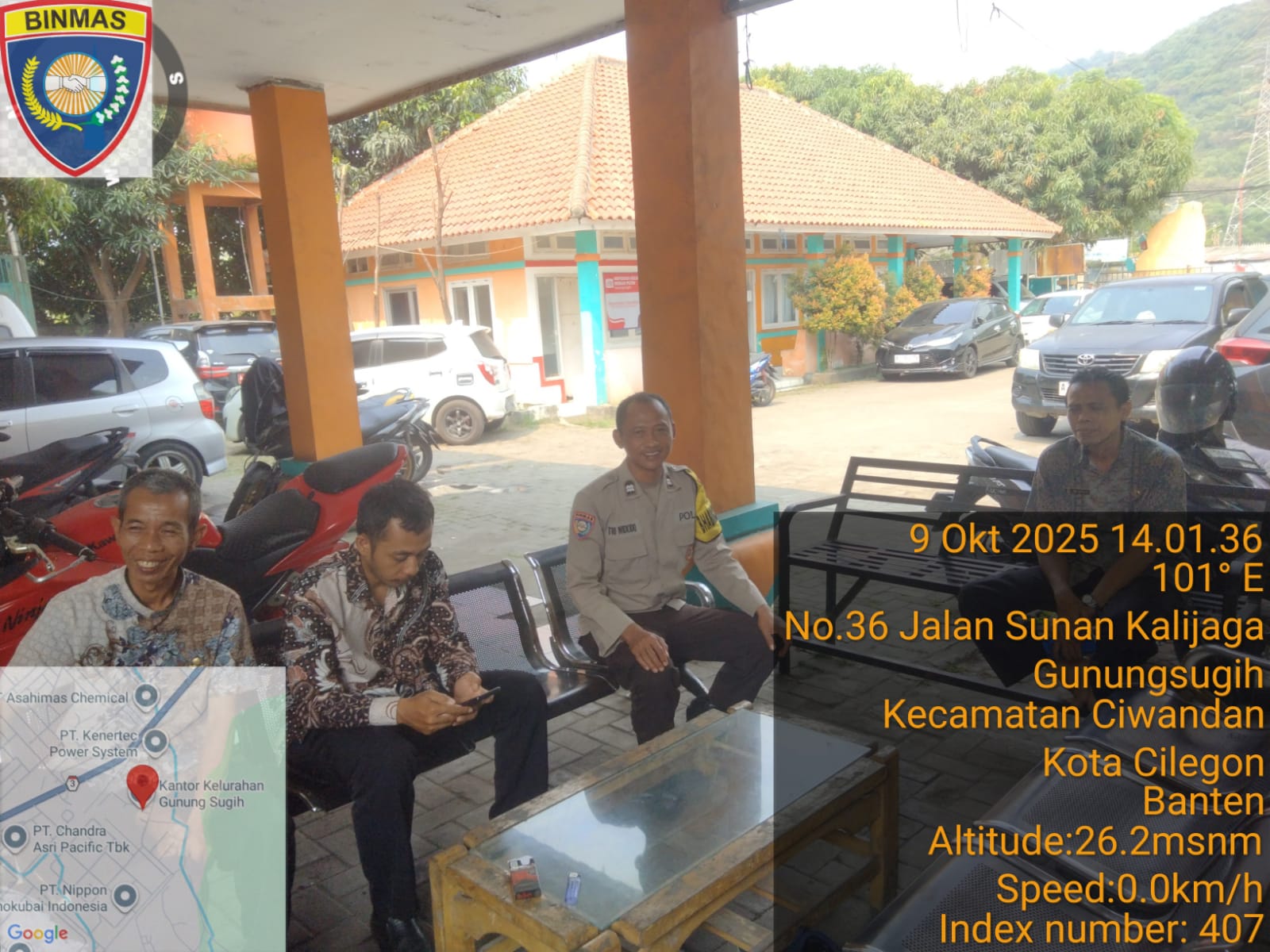 Cilegon – Bhabinkamtibmas Polsek Ciwandan Polres Cilegon Polda Banten yaitu dengan menyambangi kantor Kelurahan binaannya guna membantu dan memantau langsung proses Pelayanan Masyarakat, Kamis (09/10/2025).
