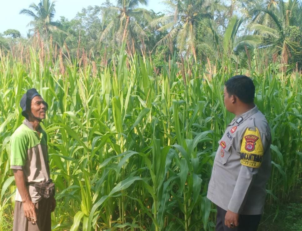 Dalam rangka mendukung program ketahanan pangan nasional dan swasembada pangan Bhabinkamtibmas Polsek Anyar melaksanakan kegiatan sambang dan monitoring lahan pertanian jagung di Desa Sindang Karya, Kecamatan Anyar, Kabupaten Serang. Sabtu (11/10)
