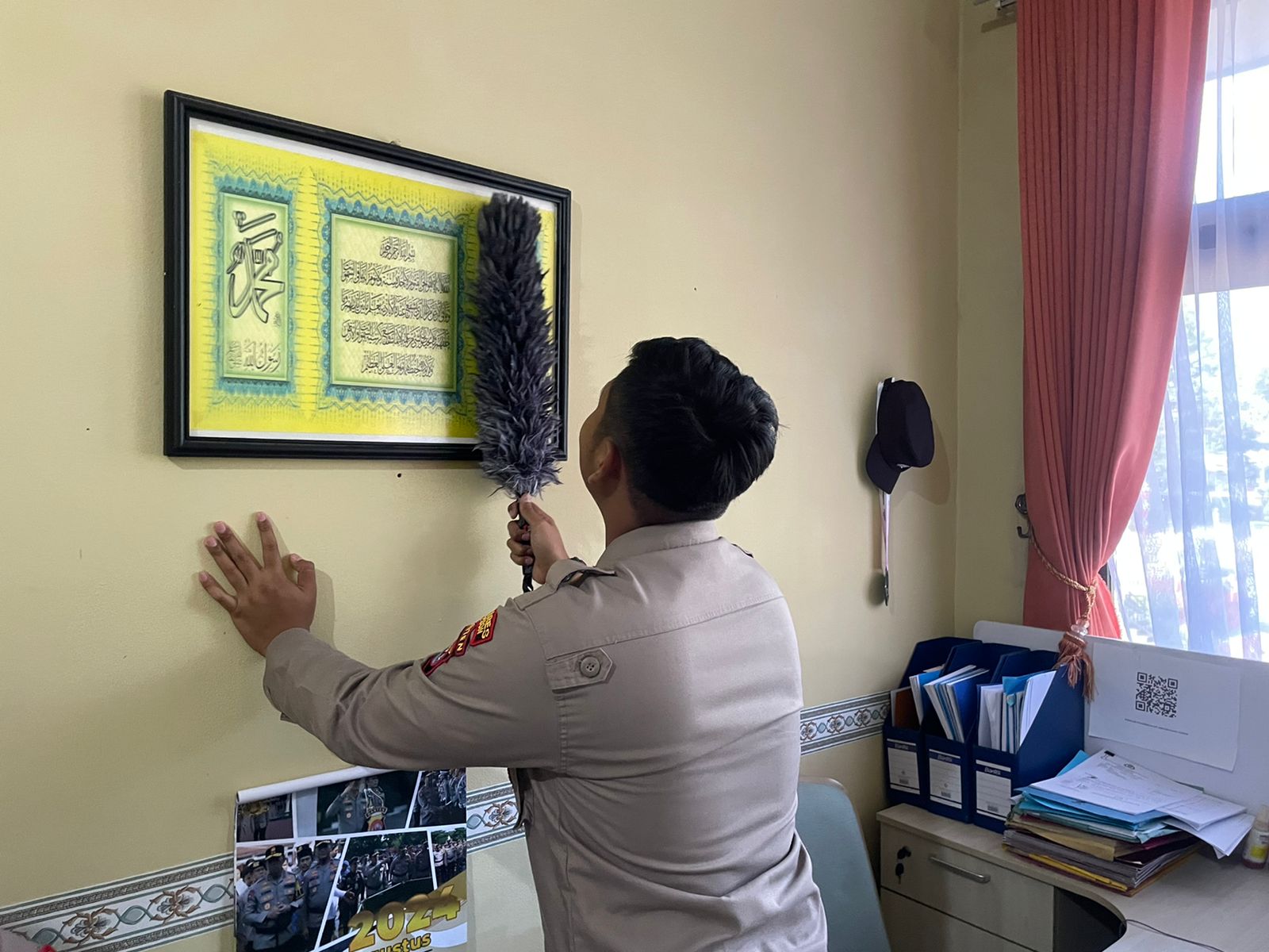 Anggota Bag SDM Polres Cilegon, Akivitas dalam membersihkan ruangan menjadi kegiatan aktif setiap hari.