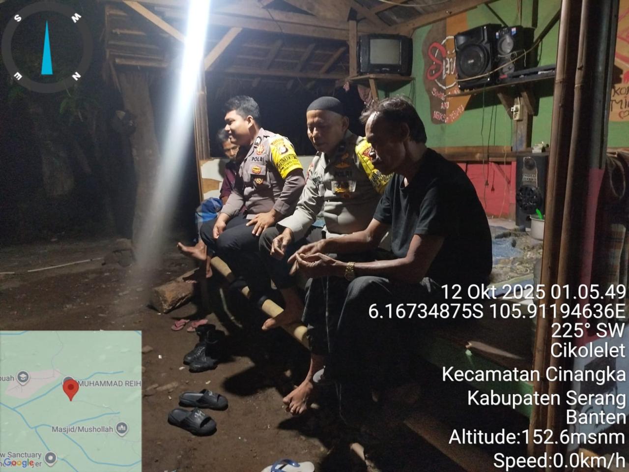 *Polres Cilegon* || Personel Bhabinkamtibmas Polsek Cinangka melaksanakan Program Komandan Wish Kapolda Banten RONDA SATKAMLING menyampaikan komunikasi dengan Petugas Siskamling agar berperan aktif dalam menciptakan Harkamtibmas yang aman dan Kondusif, Senin (13/10/2025).
