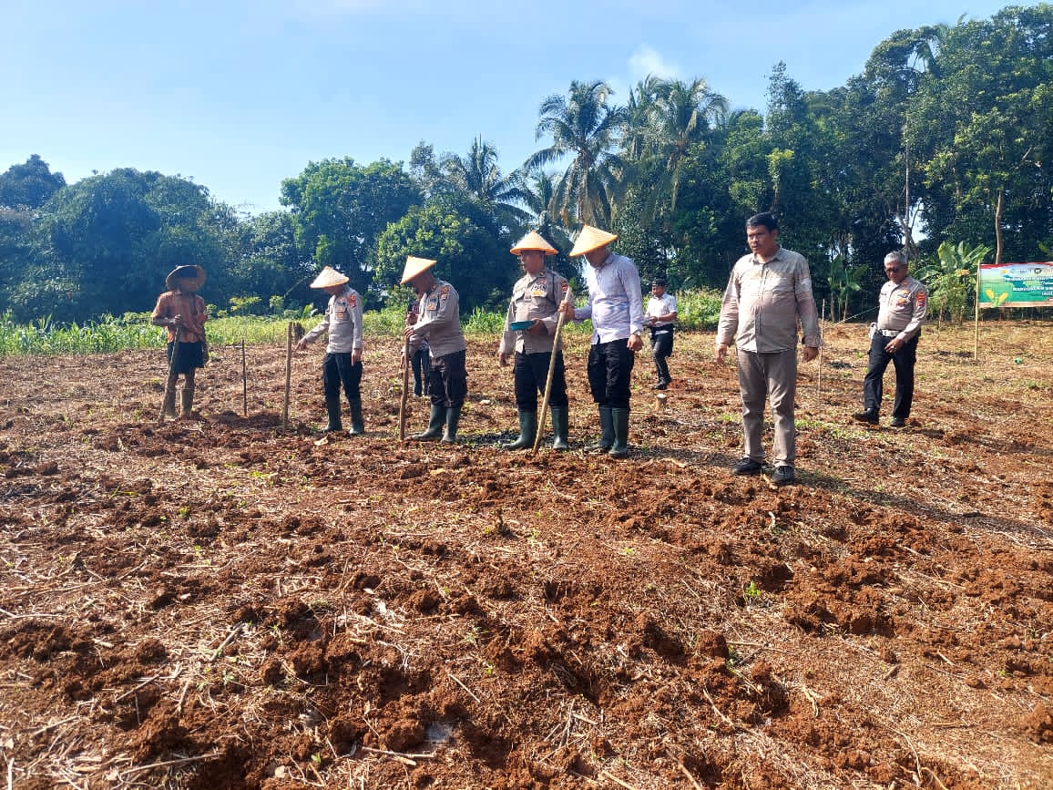 Penanaman Jagung serentak Kuartal IV Seluruh Indonesia di lahan milik kelompok tani Bpk. Maman Rt. 01/01 Kp. Macute Kel. Angsana Kec. Mancak-Serang daerah hukum Polres Cilegon.