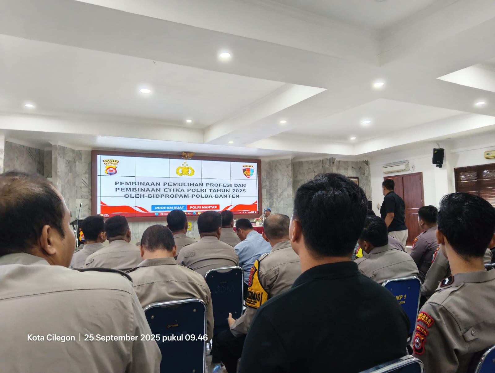 Polres Cilegon melaksanakan acara Pisah Sambut Kabag SDM, Kabaglog, dan Kasatreskrim Polres Cilegon di Aula Wicaksana Leghawa Polres Cilegon. Acara ini dihadiri oleh Kapolres Cilegon, Wakapolres Cilegon, para pejabat utama Polres Cilegon, dan personel Polres Cilegon.