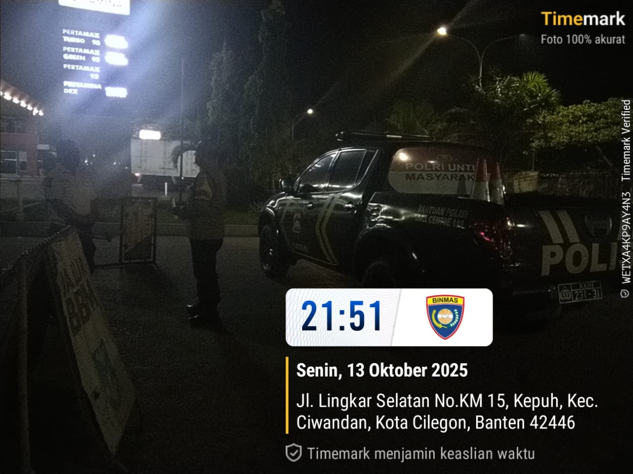 Cilegon - Personil Polsek Ciwandan Ciptakan situasi keamanan dan ketertiban di masyarakat (Kamtibmas) yang aman kondusif Dengan Melaksanakan kegiatan patroli malam guna mencegah gangguan kamtibmas dan kejahatan jalanan, Selasa (14/10/2025).