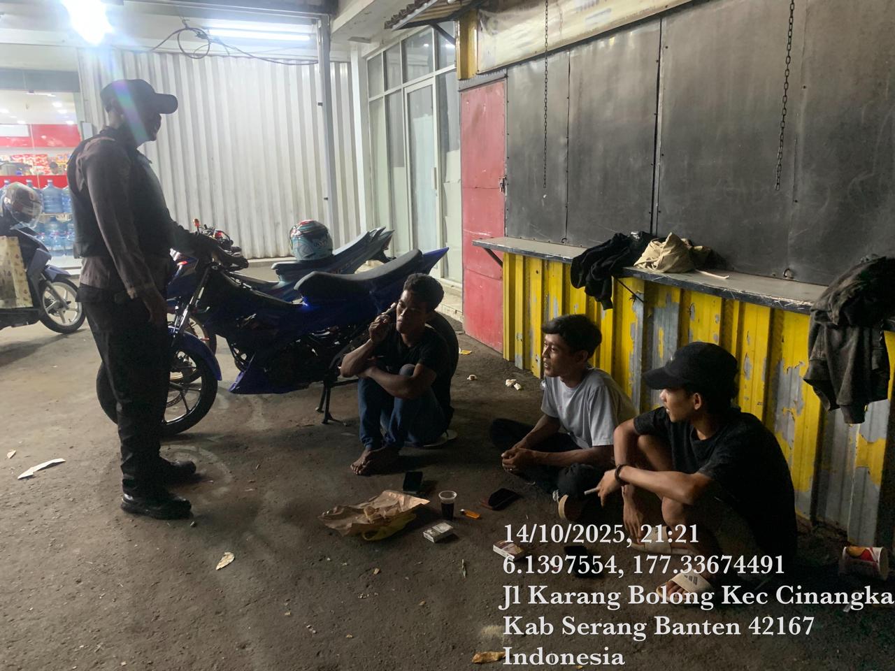 *Cilegon* – Dalam Rangka Pencegahan Kejahatan Jalanan dan Memelihara situasi keamanan dan menjaga serta memberikan rasa aman dan nyaman di masyarakat,Salah satu upaya untuk mewujudkan hal tersebut sebagaimana yang dilakukan oleh Personil Polsek Cinangka Polres Cilegon Polda Banten melaksanakan giat patroli blue light malam hari hingga menjelang pagi, Rabu (15/10/2025).