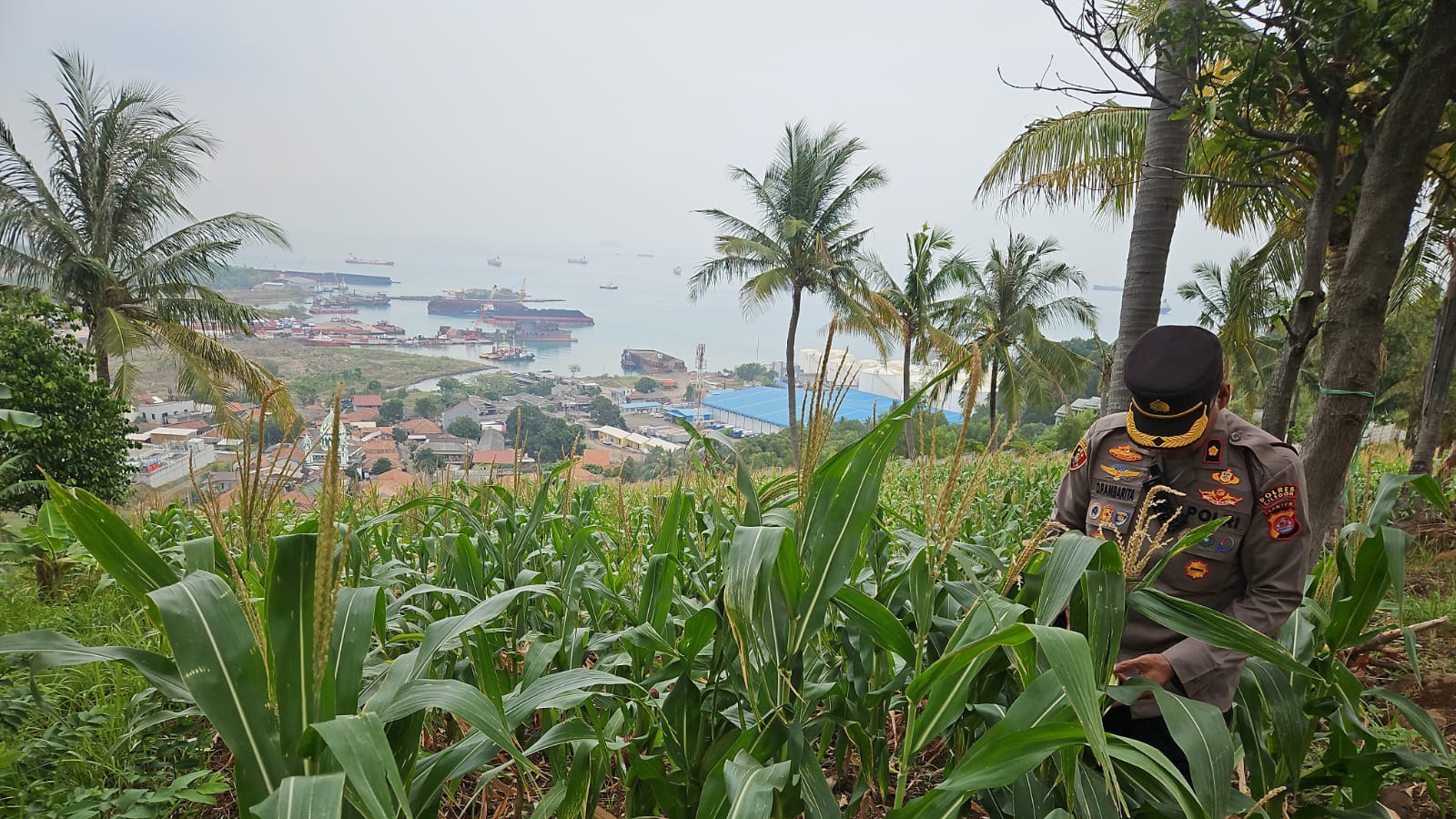 Oleh sebab itu Kapolsek Pulomerak dan  bhabinkamtibmas polsek Pulomerak bersama masyarakat tani kebon pisang Kel. Lebakgede kec. Pulomerak saat ini lakukan perawatan tanaman jagung, ujarnya