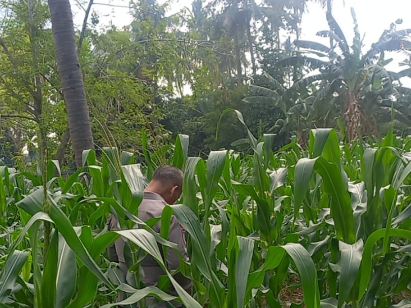 Oleh sebab itu Kapolsek Pulomerak bersama bhabinkamtibmas polsek Pulomerak bersama masyarakat Kel. Lebakgede kec. Pulomerak meninjau lahan jagung, ujarnya