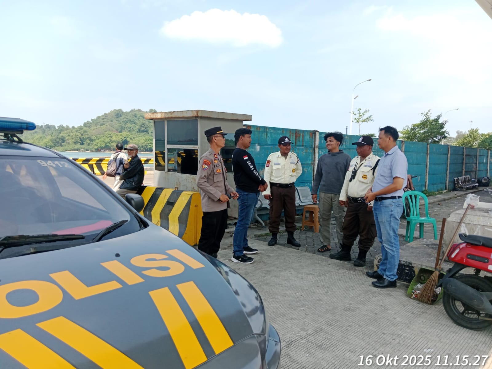 Cilegon - Personel Polsek Kskp Merak Polres Cilegon Polda Banten melaksanakan sambang dan patroli kawasan pelabuhan merak dalam rangka menjaga Harkamtibmas di Kawasan Pelabuhan Merak, Kamis (16/10/2025).