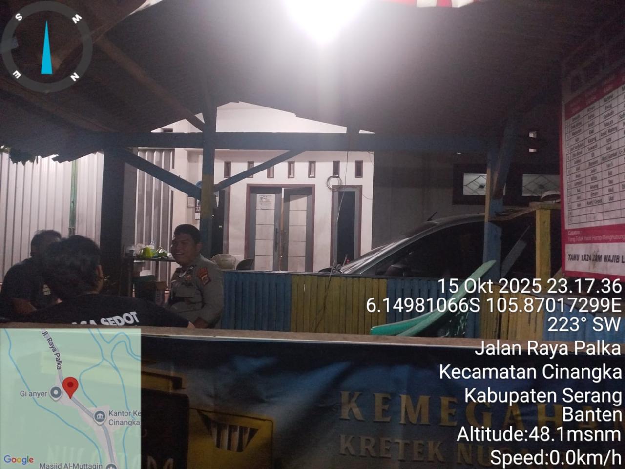 *Polres Cilegon* || Personil Bhabinkamtibmas Polsek Cinangka melaksanakan Program Komandan Wish Kapolda Banten RONDA SATKAMLING menyampaikan komunikasi dengan Petugas Siskamling agar berperan aktif dalam menciptakan Harkamtibmas yang aman dan Kondusif, Kamis (16/10/2025).