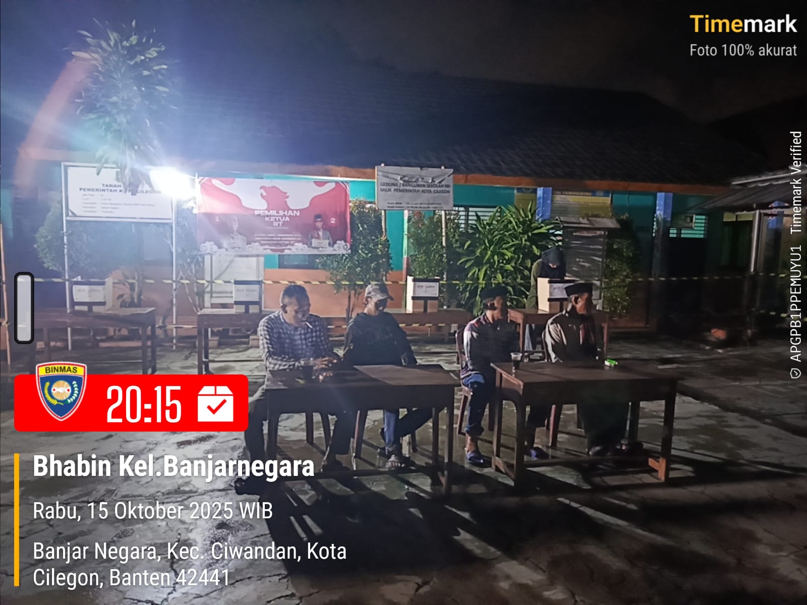 Cilegon - Bhabinkamtibmas Kelurahan Banjarnegara Polsek Ciwandan Polres Cilegon Polda Banten AIPTU Jamaludin menghadiri pemilihan Ketua RT Lingkungan kelurahan Banjarnegara Kecamatan Ciwandan Kota Cilegon, Kamis (16/10/2025).