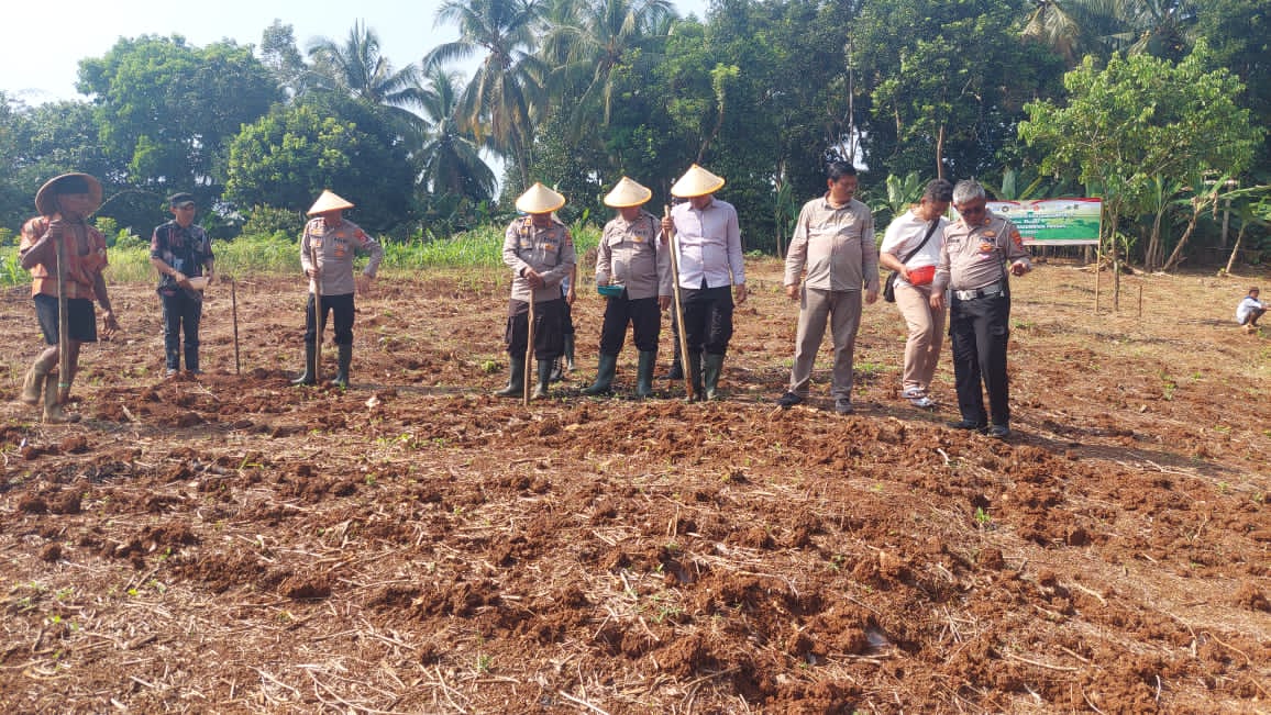 Penanaman Jagung serentak Kuartal IV Seluruh Indonesia di lahan milik kelompok tani Bpk. Maman Rt. 01/01 Kp. Macute Kel. Angsana Kec. Mancak-Serang daerah hukum Polres Cilegon.