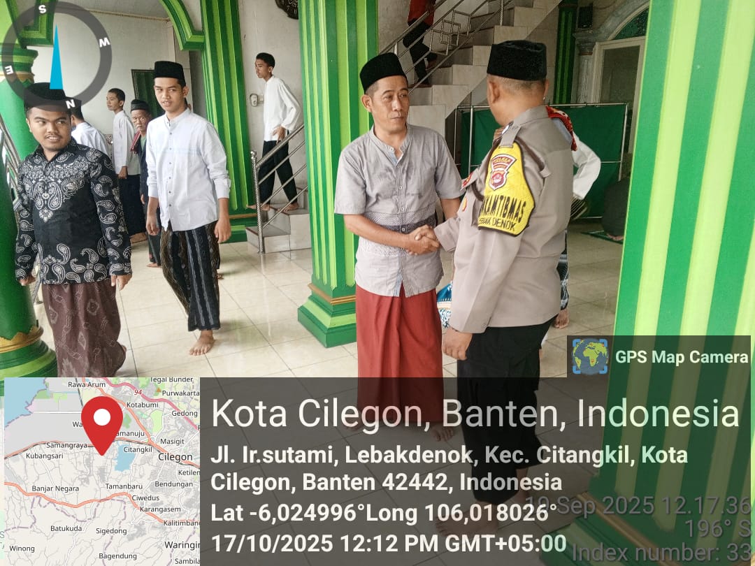 Cilegon - Bhabinkamtibmas Polsek Ciwandan Polres Cilegon Polda Banten Selesai melaksanakan Sholat Jum’at secara berjama’ah dan Sampaikan Himbauan-himbauan Kamtibmas Kepada Masyarakat Jama'ah Yang ada Dimasjid, Jum’at (17/10/2025).