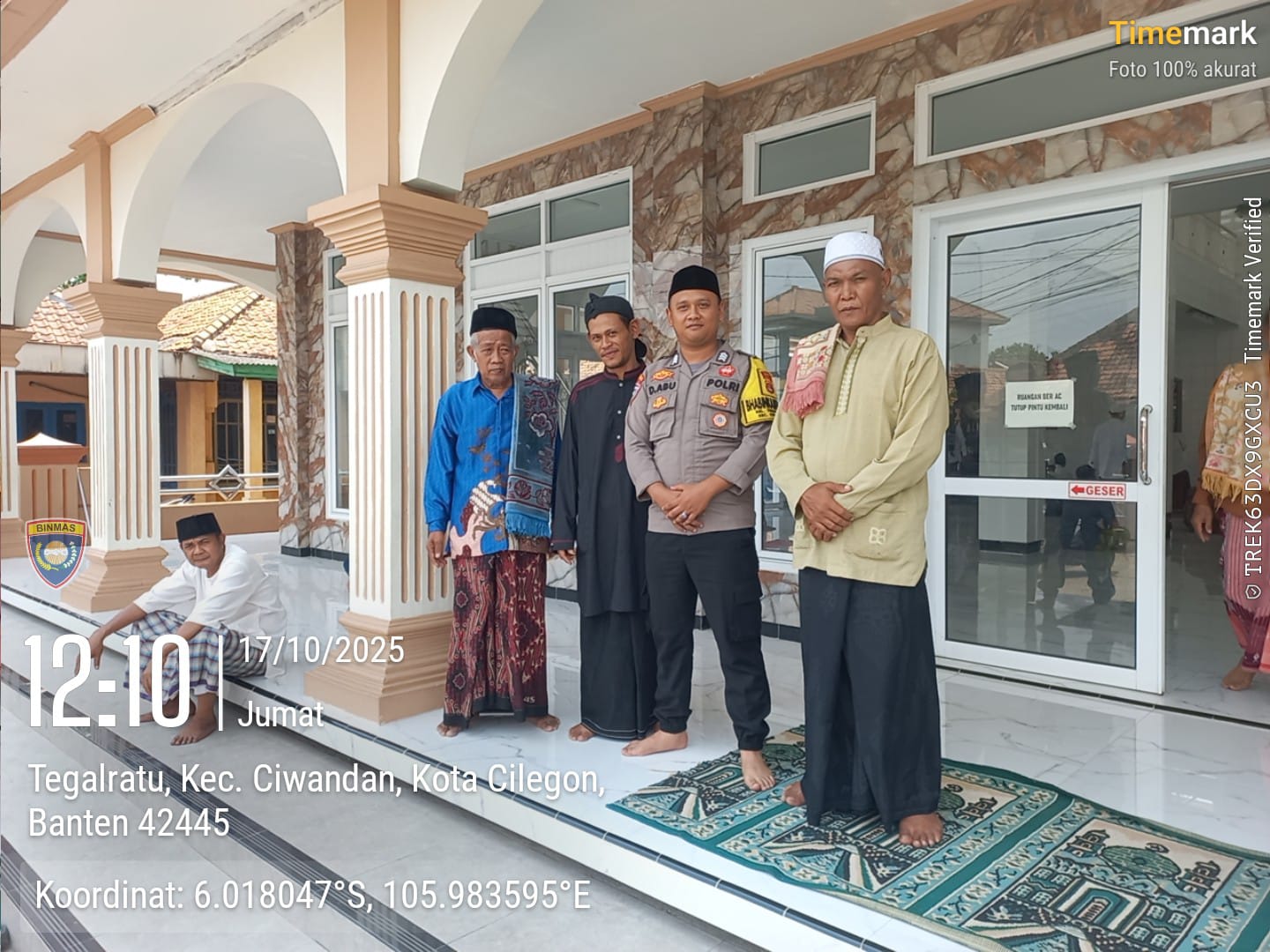 Cilegon - Bhabinkamtibmas Polsek Ciwandan Polres Cilegon Polda Banten Selesai melaksanakan Sholat Jum’at secara berjama’ah dan Sampaikan Himbauan-himbauan Kamtibmas Kepada Masyarakat Jama'ah Yang ada Dimasjid, Jum’at (17/10/2025).