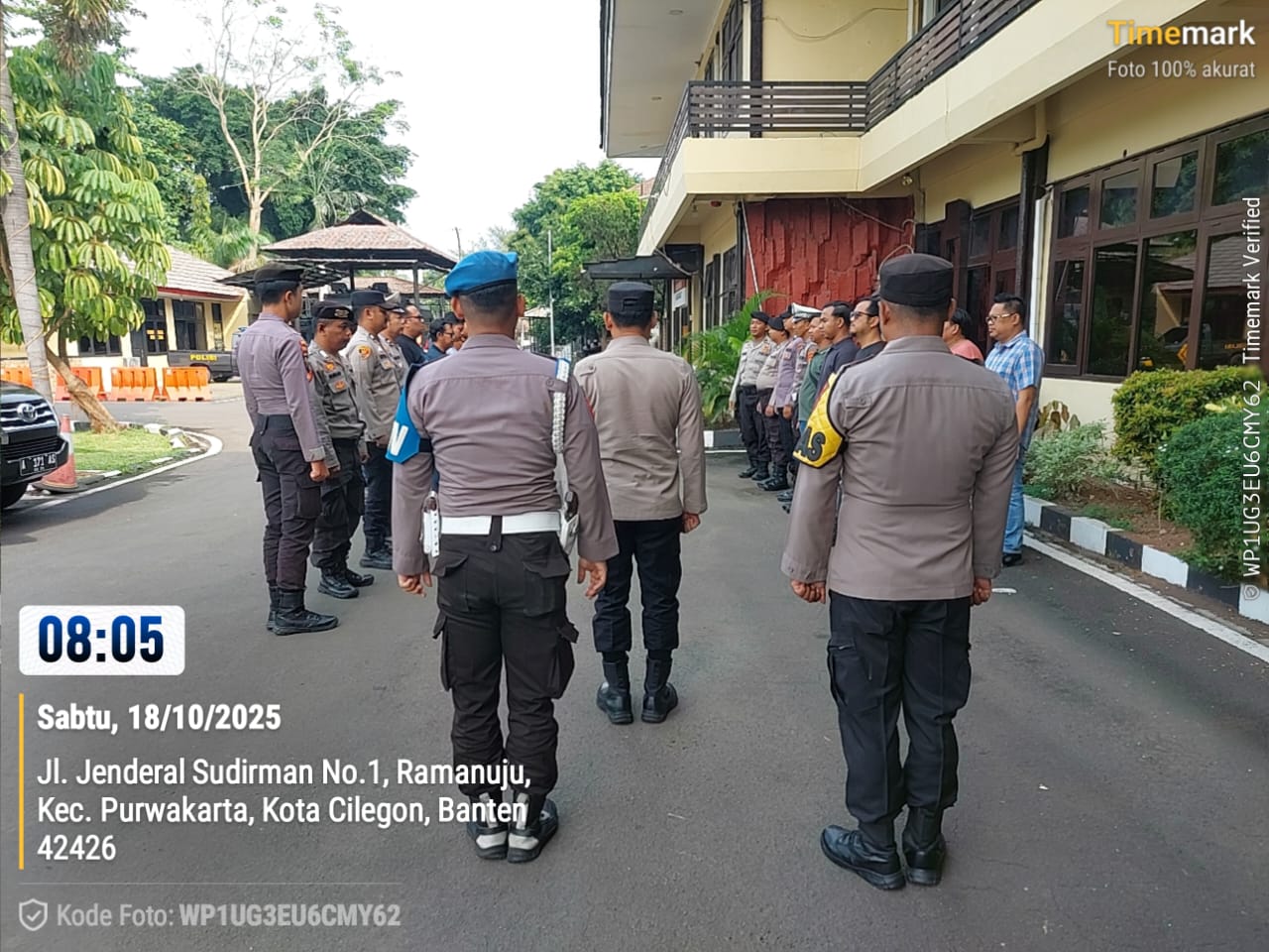 Cilegon, personel Satreskrim Polres Cilegon Polda Banten melaksanakan piket di penjagaan pintu masuk Polres Cilegon Polda Banten untuk memastikan mako Polres Cilegon dalam keadaan aman dan nyaman dalam melayani Masyarakat tanpa adanya gangguan kejahatan. Sabtu (18/10/2025).