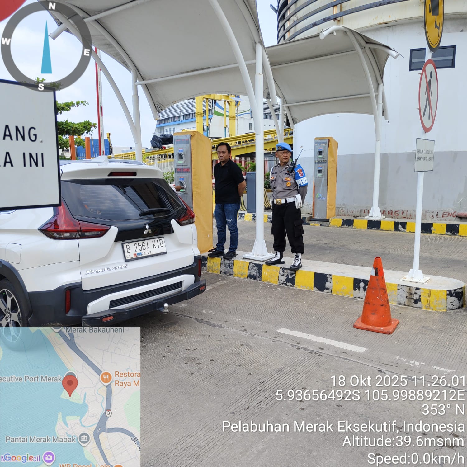 Cilegon - Personel Polsek Kskp Merak Polres Cilegon Polda Banten melaksanakan sambang dan patroli kawasan pelabuhan merak dalam rangka menjaga Harkamtibmas di Kawasan Pelabuhan Merak, Sabtu (18/10/2025).