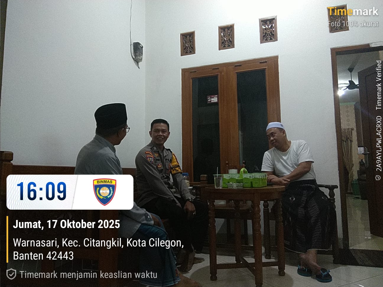 Cilegon - Bhabinkamtibmas Polsek Ciwandan Polres Cilegon Polda Banten Lakukan Sambang Malam guna mengantisipasi aksi kejahatan pada daerah binaan dan memberikan rasa aman dan nyaman kepada warga binaan, Sabtu (18/10/2025).