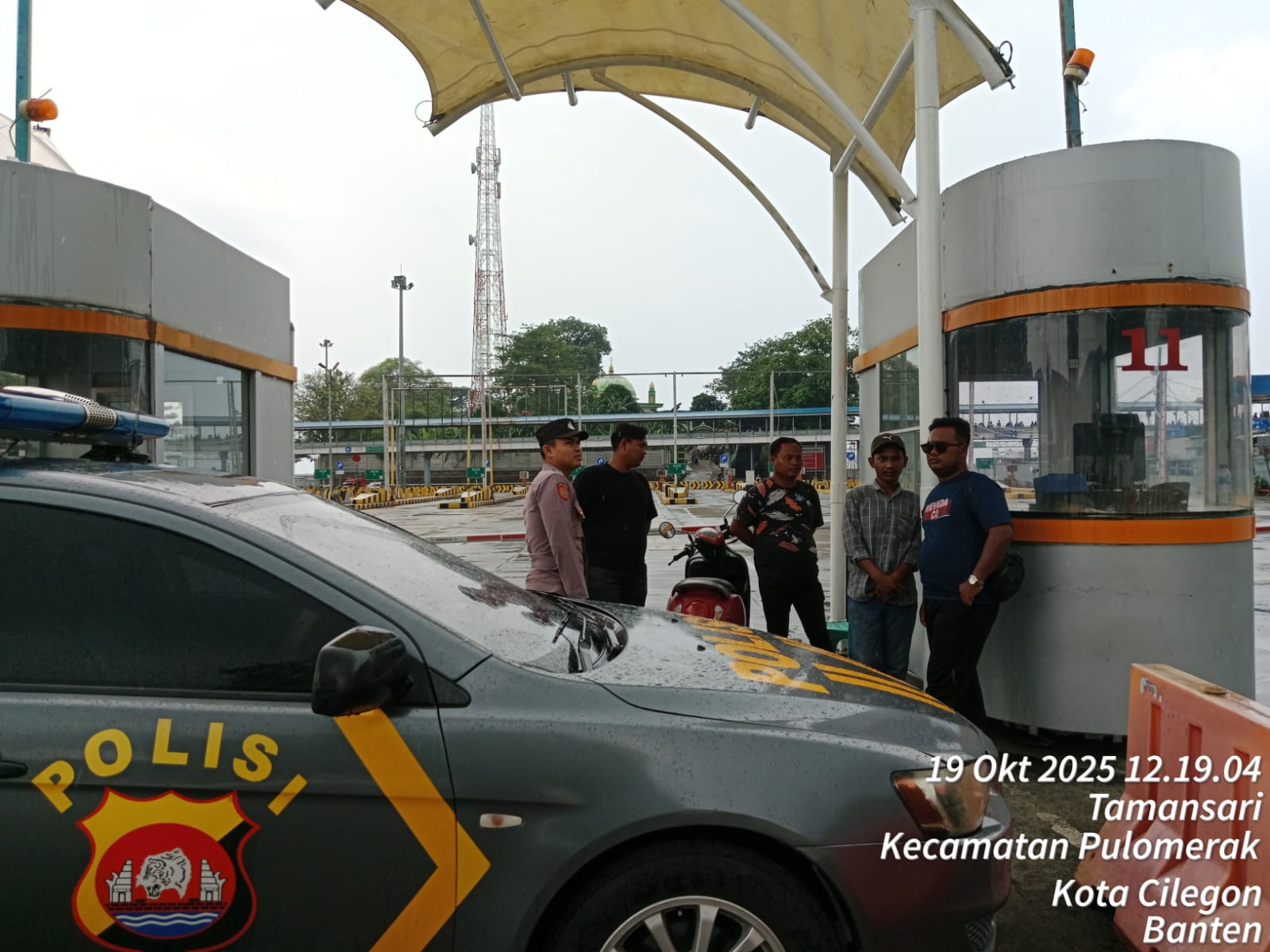 Cilegon - Personel Polsek Kskp Merak Polres Cilegon Polda Banten melaksanakan sambang dan patroli kawasan pelabuhan merak dalam rangka menjaga Harkamtibmas di Kawasan Pelabuhan Merak, Minggu (19/10/2025).