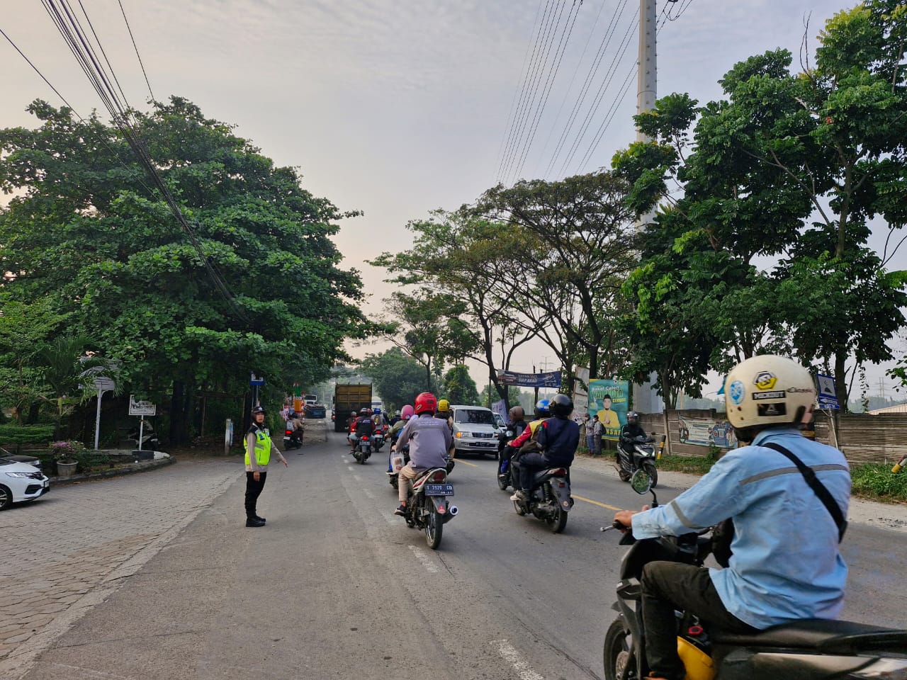 Polres Cilegon, Aipda Emi Prasetyo melaksanakan kegiatan pengaturan arus lalu