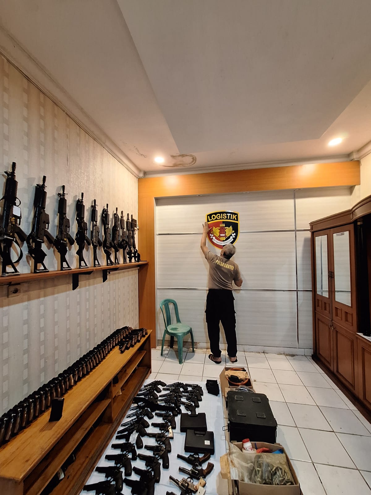 Cilegon,Polres Cilegon Polda Banten Personel Baglog Melaksanakan pengecekan dan membersihkan senjata Api Dinas yang ada Digudang Logistik Polres Cilegon,