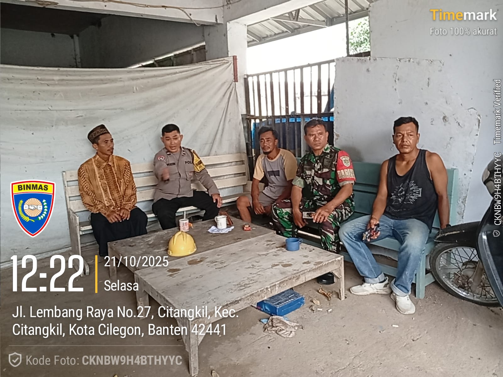 Cilegon - Demi Menjaga keamanan dan ketertiban masyarakat di daerah binaan, Bhabinkamtibmas Polsek Ciwandan Polres Cilegon Polda Banten bersama Babinsa Koramil Ciwandan Laksanakan Patroli Bersama guna membangun sinergitas, Selasa (21/10/2025).