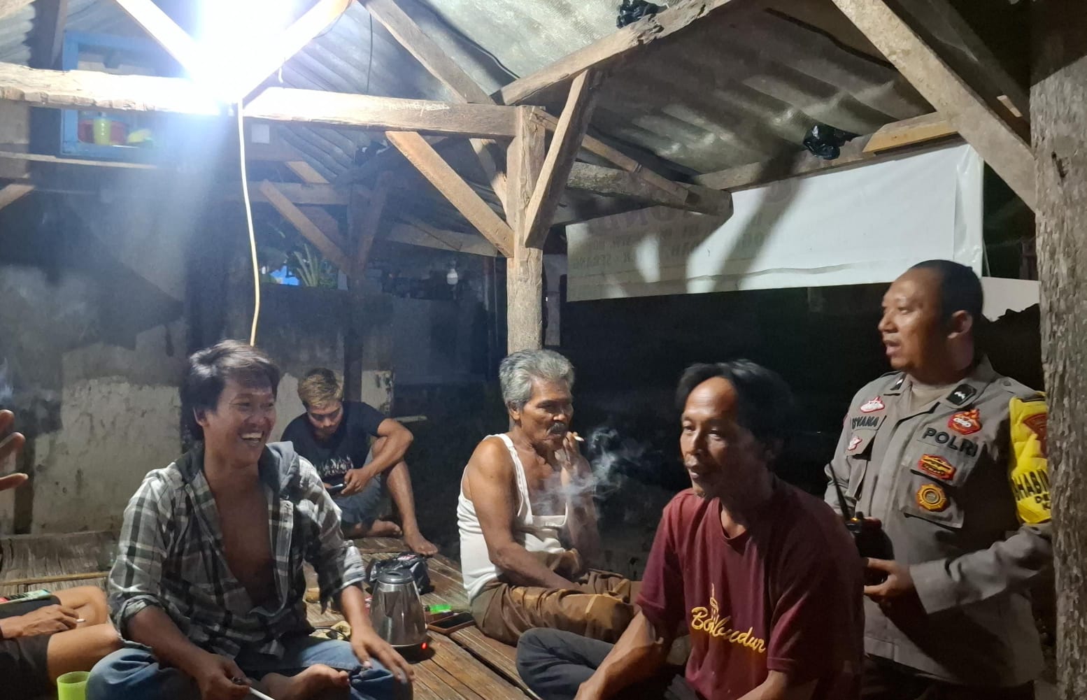 Polsek Anyar Dialogis Kepada Warga Yang Melaksanakan Kegiatan Ronda siskamling