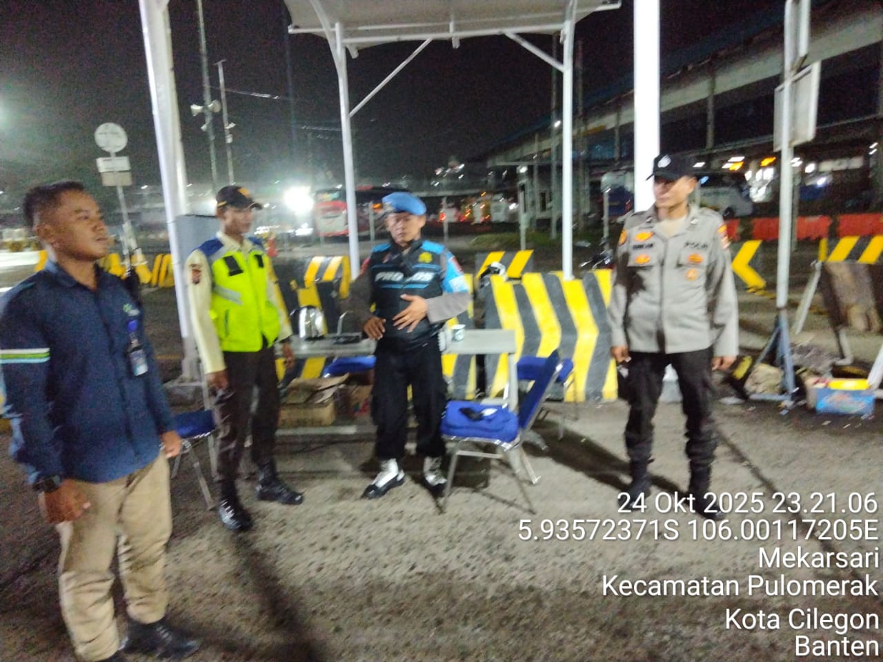 Cilegon - Personil Polsek Kskp Merak Polres Cilegon melaksanakan patroli di kawasan pelabuhan merak memberikan rasa aman dan damai, Jumat (24/10/2025)