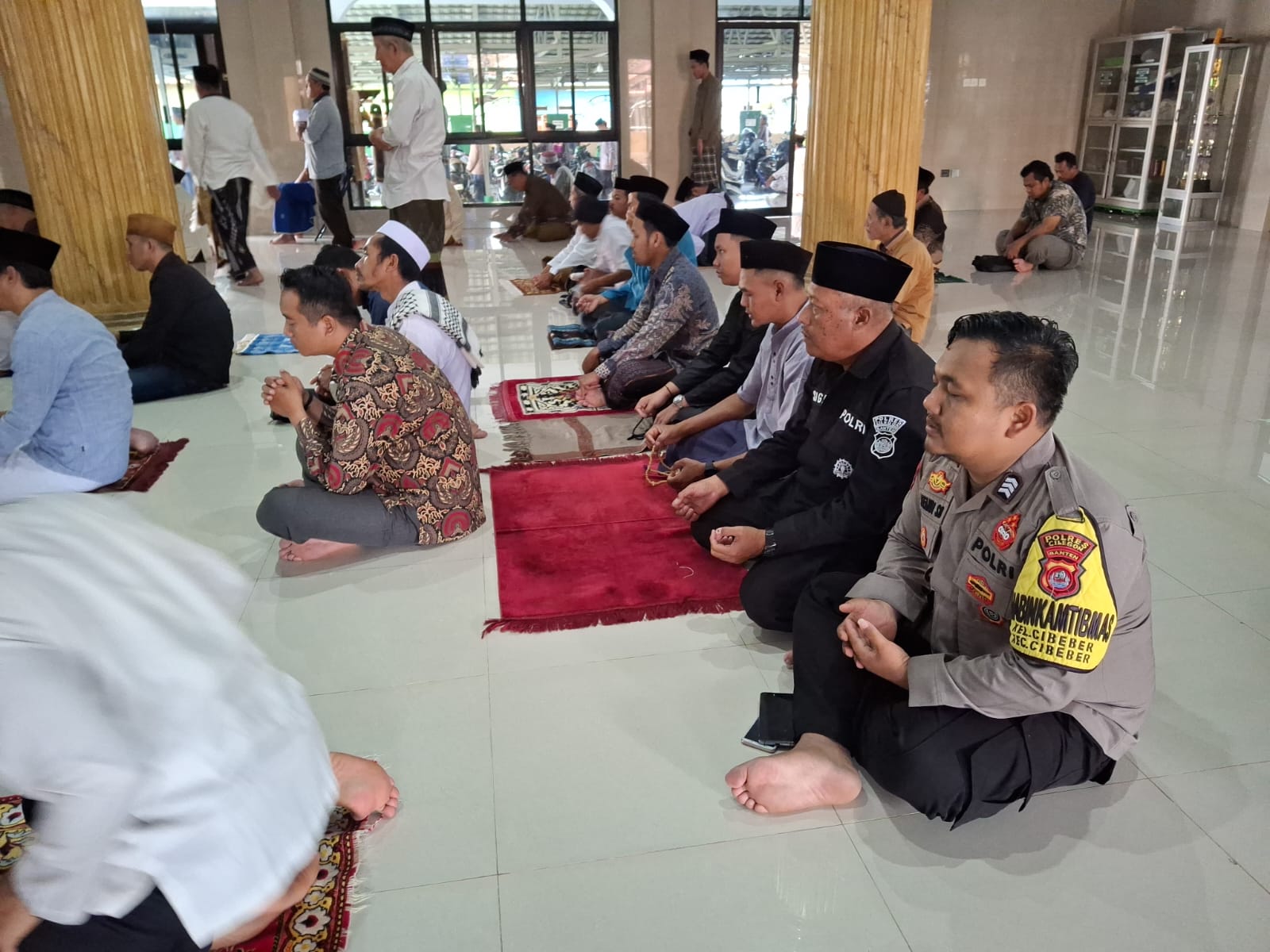 Seperti Tadi Saya Melaksanakan Kegiatan Jumat keliling di Masjid Nurul Ibad Link Sambirata Kelurahan Cibeber Kecamatan Cibeber Kota Cilegon setelah pelaksanaan kegiatan sholat kami laksanakan bincang bincang dengan masyarakat guna menciptakan situasi Kamtibmas diwilayah kecamatan Cibeber Kota Cilegon. Ujar Akp Sigit Dermawan.