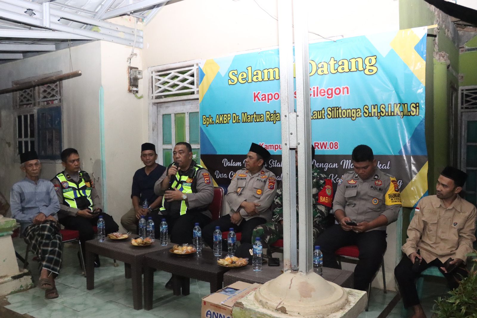 Cilegon – Dalam rangka memperkuat kemitraan antara Polri dan masyarakat dalam menjaga keamanan lingkungan, Kapolres Cilegon Polda Banten AKBP Dr Martua Raja Taripar Laut Silitonga S.H., S.I.K., M.Si melalui Kasat Binmas IPTU Muhyidin, S.H., melaksanakan kunjungan ke Pos Kamling Kampung Kopi RT 001 RW 008, Desa Cikolelet, Kecamatan Cinangka, Kabupaten Serang, Sabtu (25/10/2025) malam.