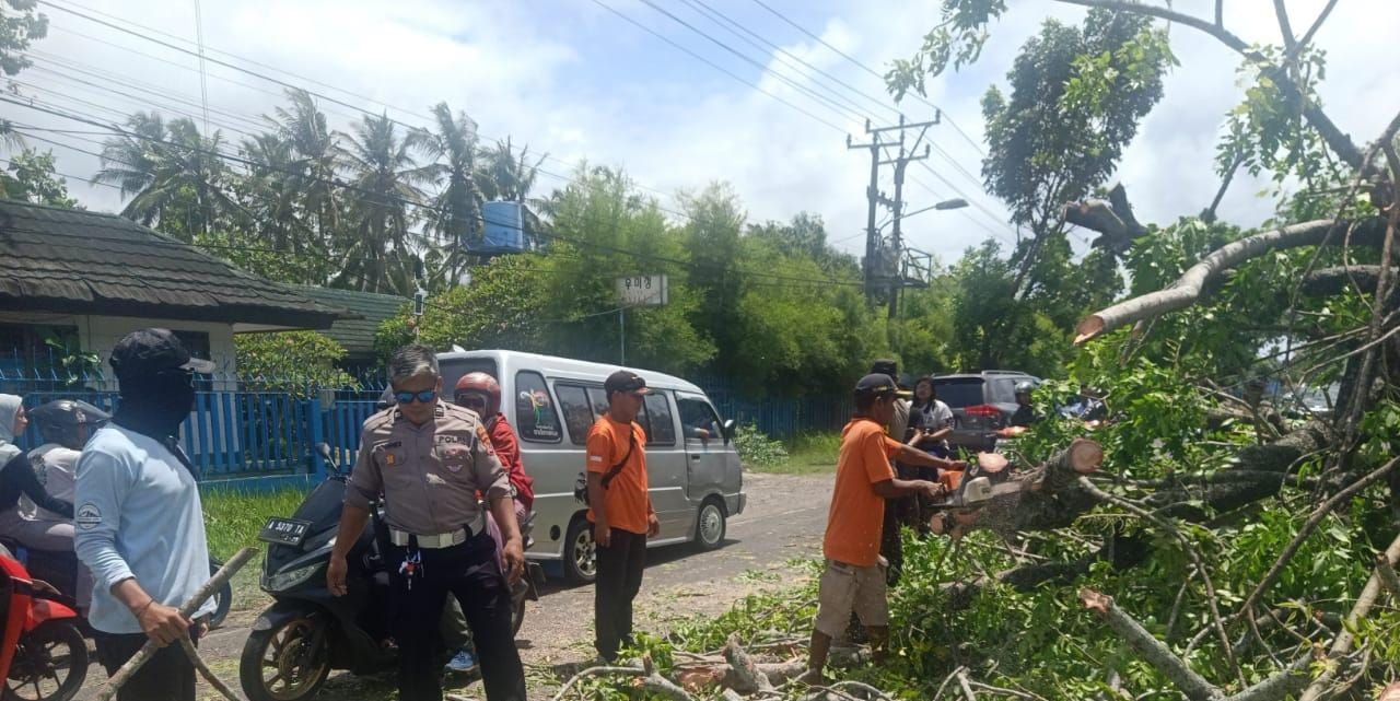 Kapolres Cilegon Polda Banten AKBP Dr. Martua Raja Taripar Laut Silitonga Melalui Kapolsek Anyar Polres Cilegon Polda Banten IPTU Iwan Sofiyan Mengatakan di Jl Raya Anyar-Cinangka tepatnya di depan RM Bintang Laut Desa Anyar Kec. Anyar Kab. Serang telah terjadi pohon tumbang yang diakibatkan oelhn angin kencang. Tidak ada korban jiwa dalam kejadian tersebut, namun berdampak pada arus lalu lintas dan menimbulkan antrian kendaraan dari arah Cilegon menuju Anyar maupun sebaliknya