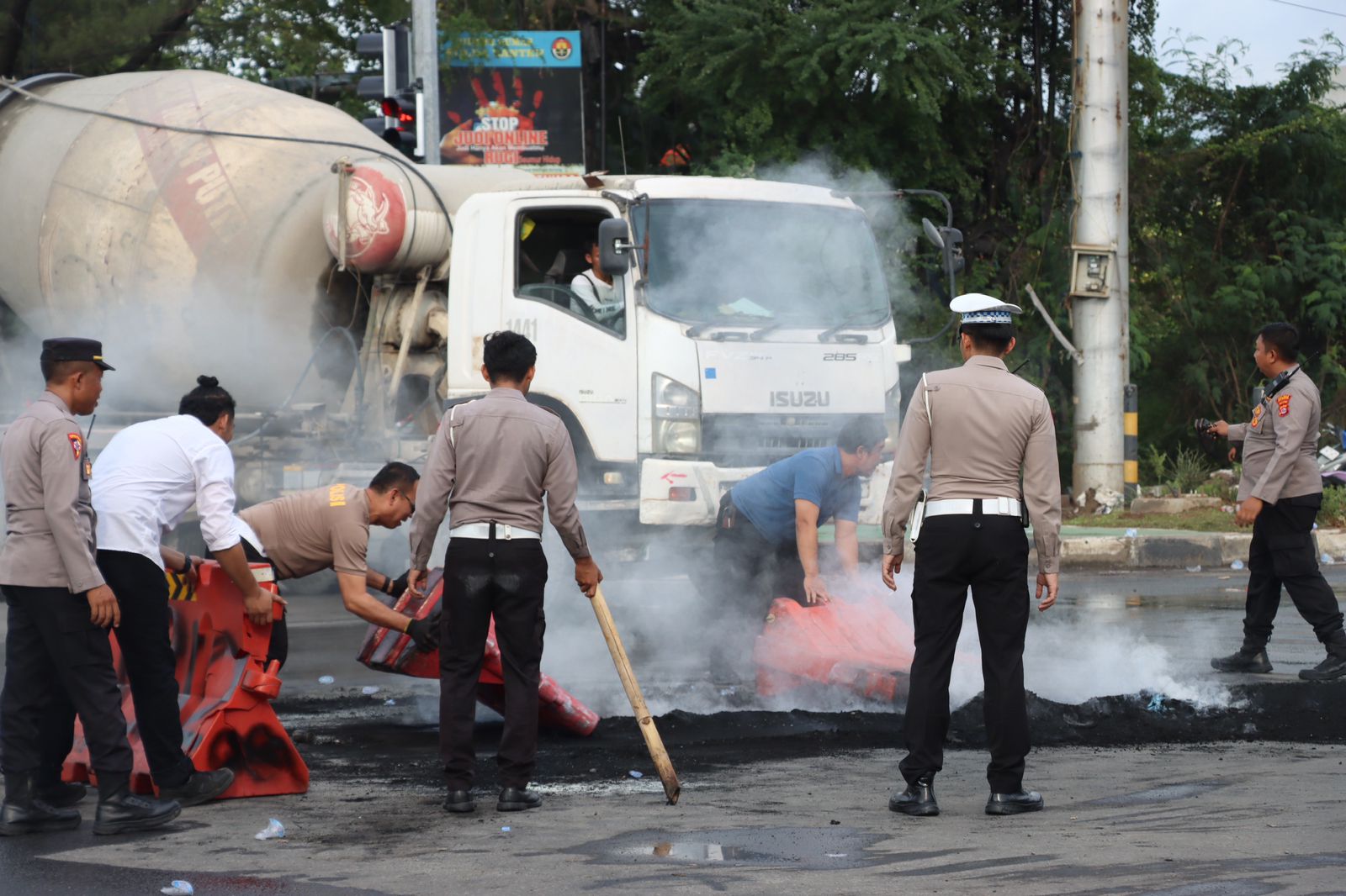 massa sempat memblokade akses jalan di sekitar lokasi aksi. Kasat Intel Polres Cilegon bersama Kasat Intel Polresta Serang Kota kemudian melakukan penggalangan terhadap massa dan salah satu tokoh aksi, Muksinin, untuk membuka jalan kembali demi menjaga kelancaran arus lalu lintas dan menghindari gangguan yang lebih luas kepada masyarakat.
