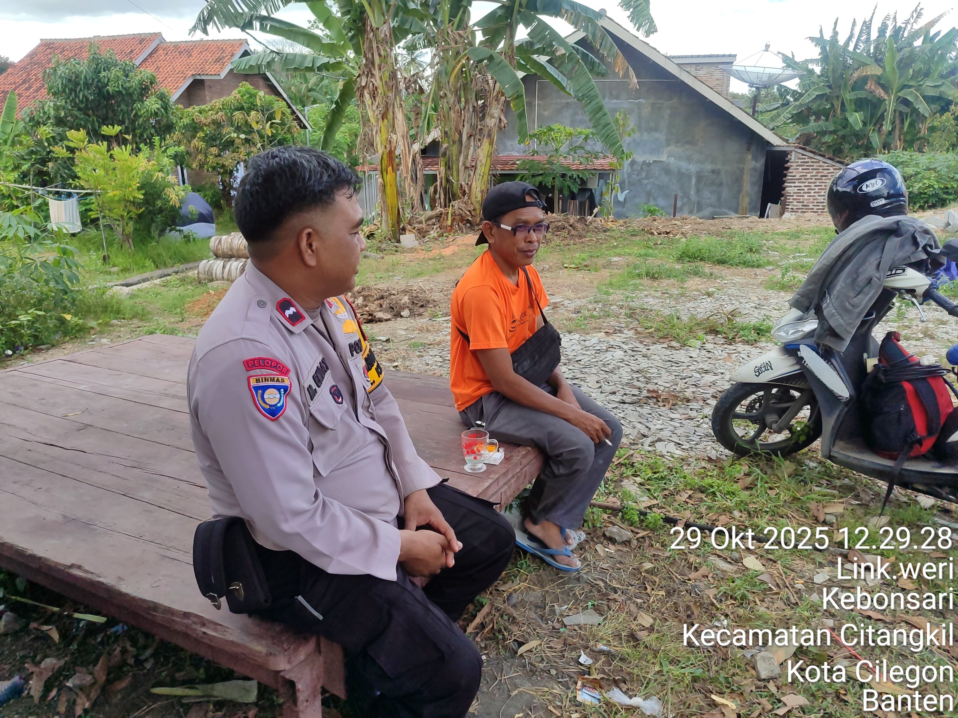 Cilegon - Giat sambang ini merupakan salah satu tugas rutin Bhabinkamtibmas yakni dengan melaksanakan kunjungan kepada masyarakat binaannya untuk menjalin silaturahmi yang lebih erat dan menyampaikan pesan-pesan kamtibmas serta mencari informasi yang berkembang di masyarakat agar tercipta situasi kamtibmas yang aman dan kondusif, Rabu (29/10/2025).