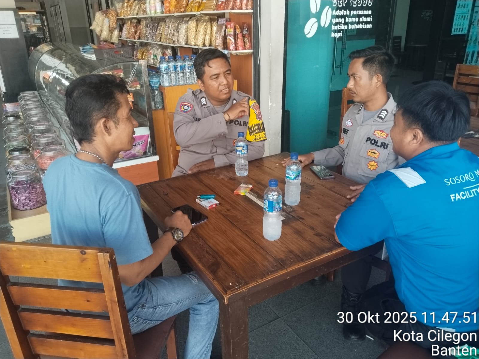 Cilegon - Personel Polsek Kskp Merak Polres Cilegon Polda Banten melaksanakan sambang dan patroli kawasan pelabuhan merak dalam rangka menjaga Harkamtibmas di Kawasan Pelabuhan Merak, Kamis (30/10/2025).